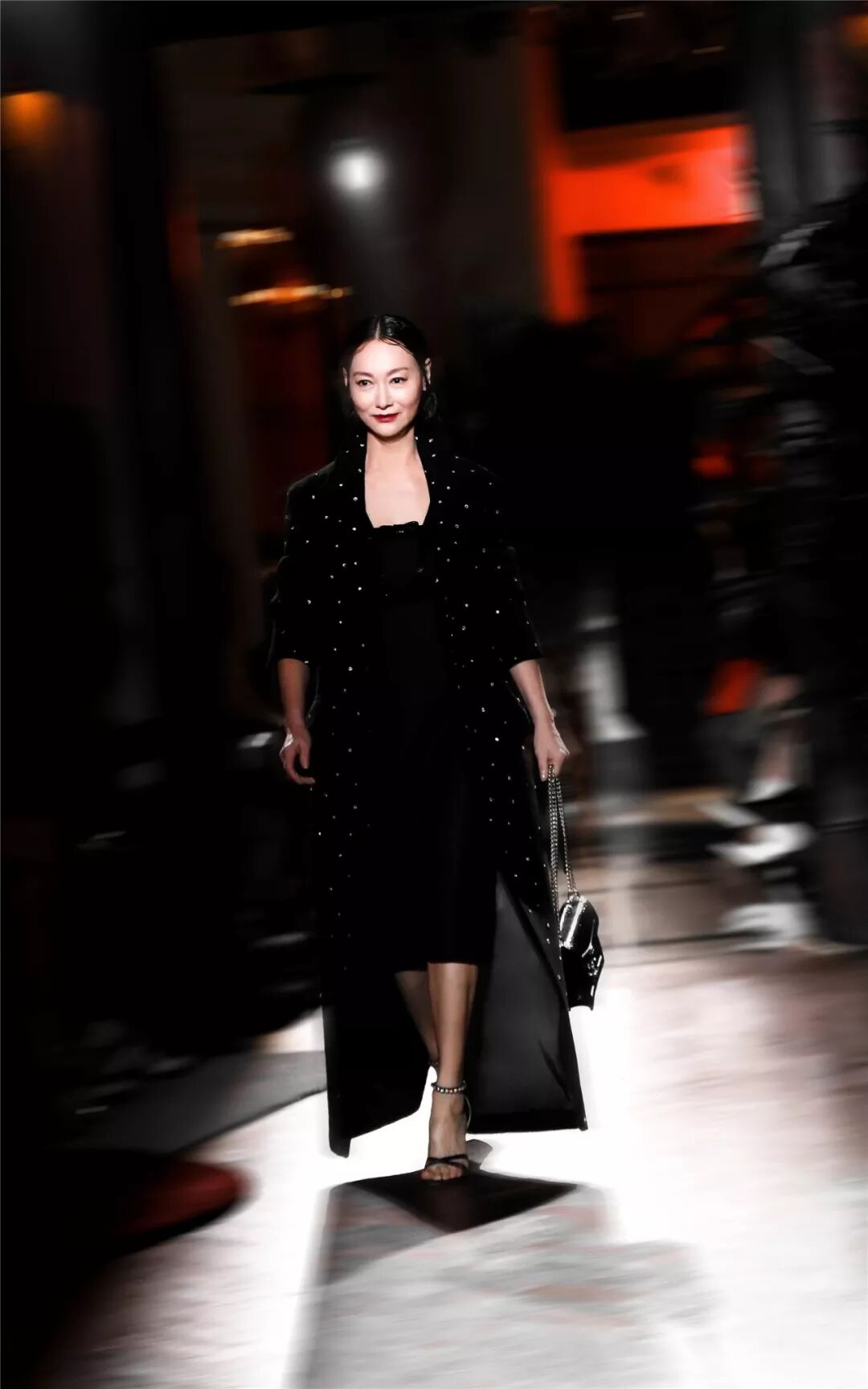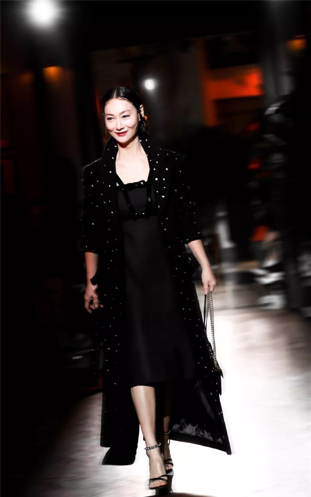 身着黑色大衣亮相T台,精致复古,超稳的台风颇具气场。网友评价:“亦美亦酷的满贯影后,今天我们get到啦~!”